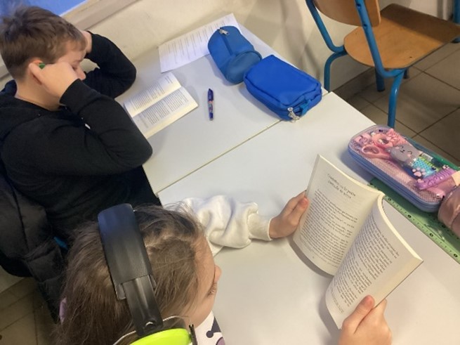 Voici quelques-uns de nos exercices : la lecture effacée, le furet, le mot tabou, le ping-pong des yeux, le détective, les virelangues, … Nous utilisons aussi du matériel spécifique : les chuchoteurs et les casques anti-bruit.